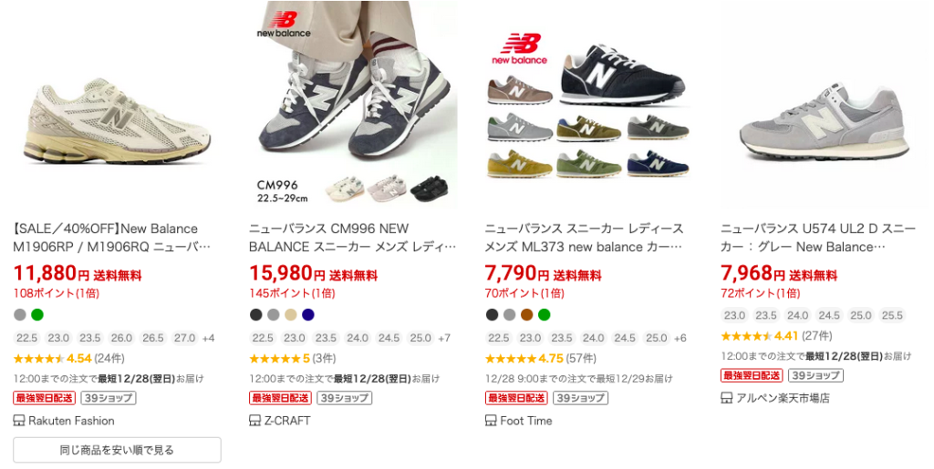 ニューバランスは、楽天市場で安く買うことができます。
